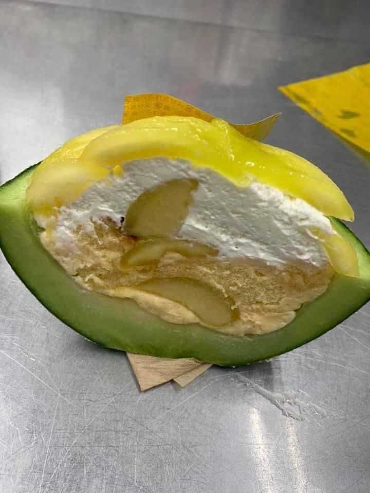 カスタードクリームとスポンジ生地、生クリームとの相性も良く、とても豪華なメロンショートケーキです。