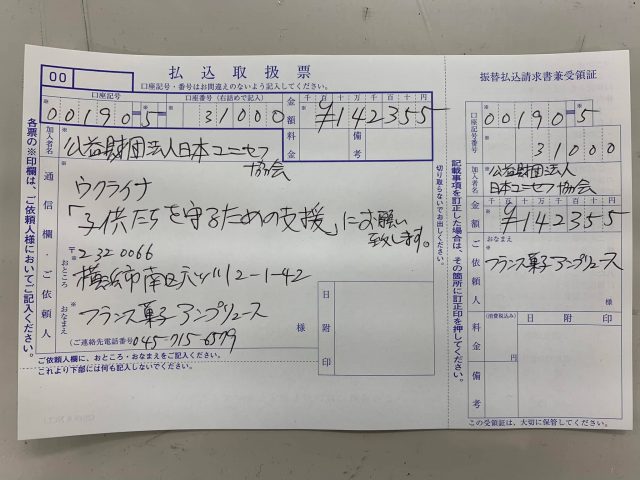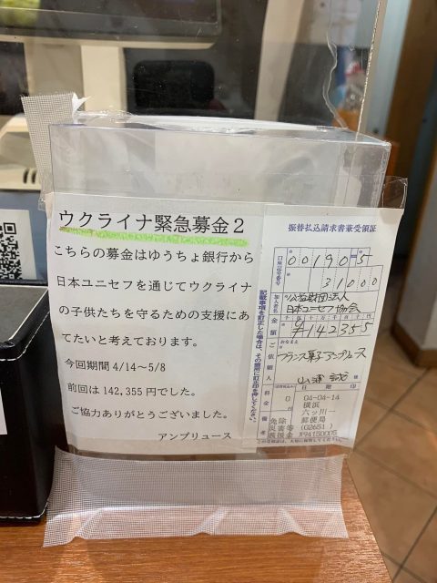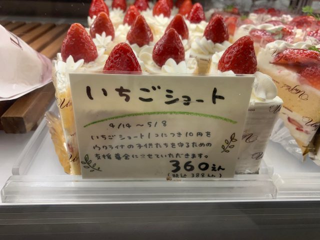 皆様からの温かなお気持ちを頂戴致し、ショートケーキお買い上げ1個につき10円を寄付にあてさせて頂き昨日、日本ユニセフを通じてウクライナの子供達のための支援にさせて頂きました。