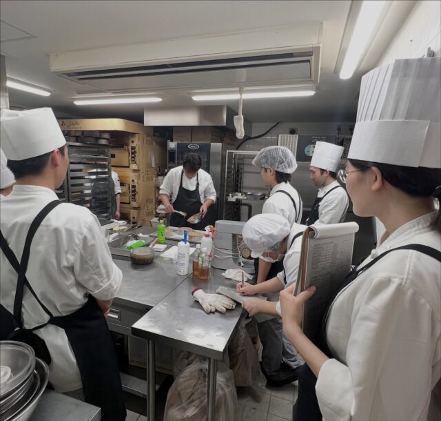 名店バスキュールの佐藤シェフに企業内講習会をして頂きました 2025.10.20 NEWS Tweet 先日はセンター南の名店バスキュールの佐藤シェフに企業内講習会をして頂きました。 洗練されたお菓子と、佐藤シェフのお菓子作りを間近で見れてスタッフ達もとても勉強になったようです。 講習会をやって頂く度に、アンプリュースの様々な商品がグレードアップして美味しくなっております。 佐藤シェフとアシスタントの竹林さん、お忙しい中講習会を受けて頂きどうも有難うございました。 また来年も宜しくお願い致します。 Facebook で共有するにはクリックしてください (新しいウィンドウで開きます) Facebook クリックして X で共有 (新しいウィンドウで開きます) X Tweet